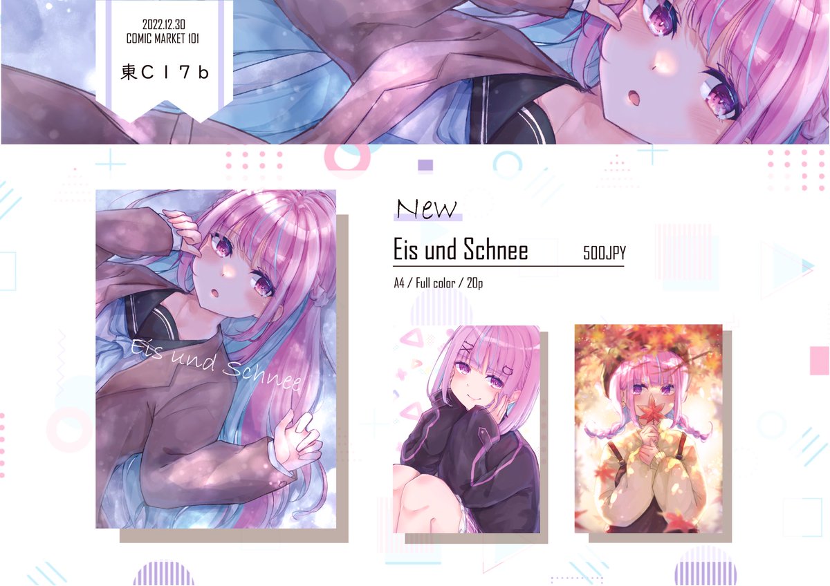 7 16 #C101 冬コミお品書きです! 12/30 1日目 【東C-17b】 「夜更かしドール」です!!新刊の湊あくあフルカラーイラスト本と手描きミニ色紙の頒布になります! よろしくお願いいたします~‼︎ 22/12/29 10:21