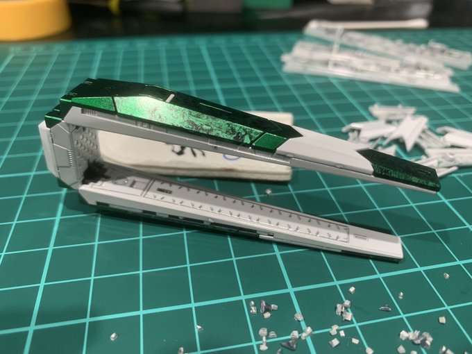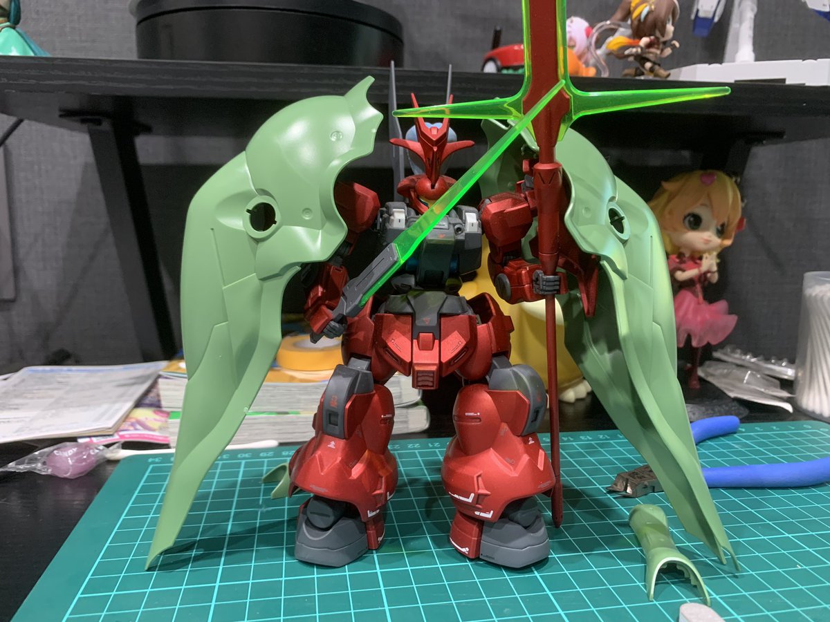 やっっっっと完成しました!! HGUCクシャトリヤNZ-666 全塗装(キャンディ) デカすぎて撮影ブースに入らなかったから背景ゎ壁ですw ネオジオンのマークの塗装がうまくいって本当によかったです! #ガンプラの画像を貼るとRTされると聞いて #ガンプラ好きとつながりたい #ガンプラ