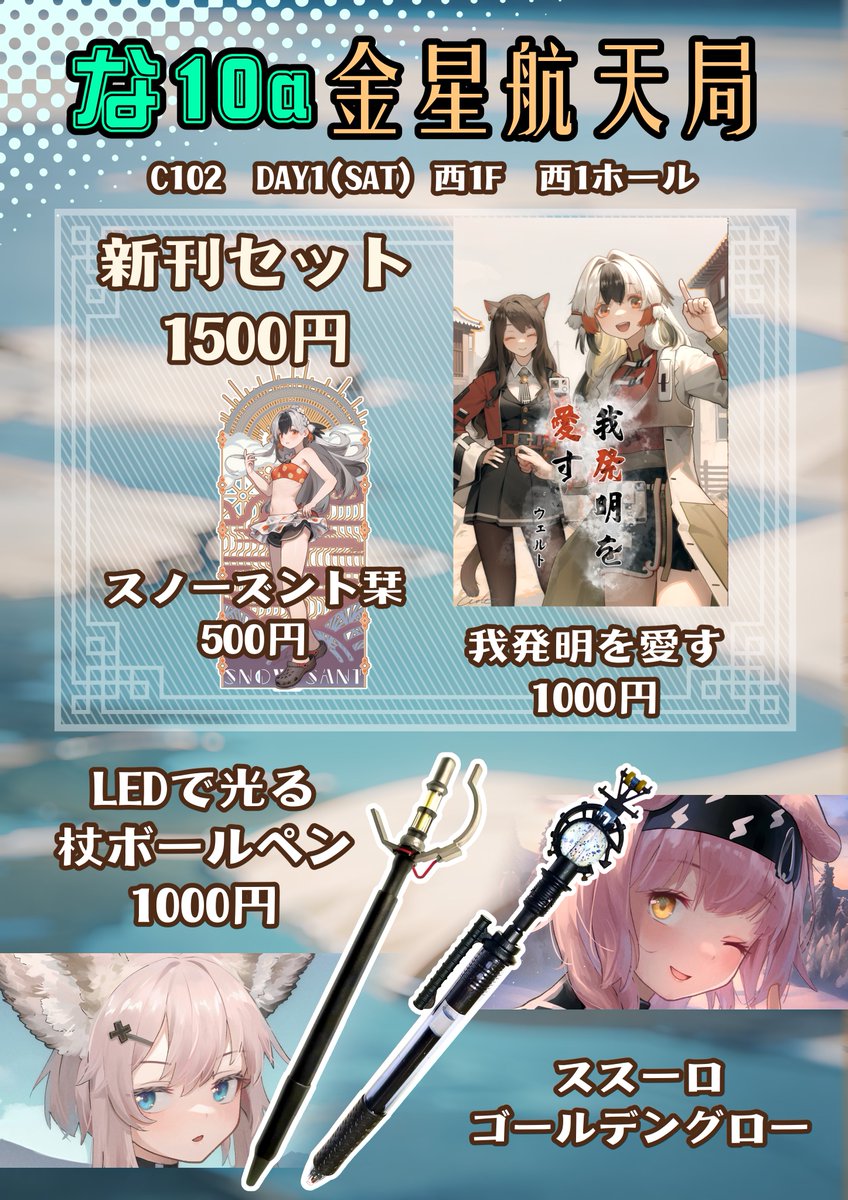 夏コミのお品書きです。 1日目(土)西な10a「金星航天局」にてお待ちしてます。 よろしくお願いします🏖️ #C102お品書き #C102