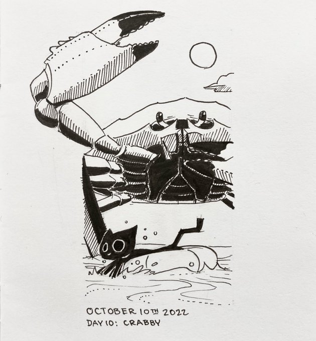 Day 10: CRABBY Had Cthulhu on the brain! ❤️❤️❤️❤️❤️❤️❤️❤️🩹❤️🩹 #inktober #inktober2022 #inktoberday10 #inktoberchallenge #catdrawing #blackandwhite #halloween #doodle #micronpen