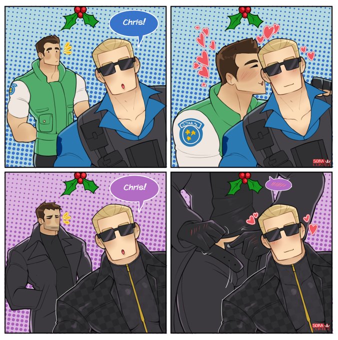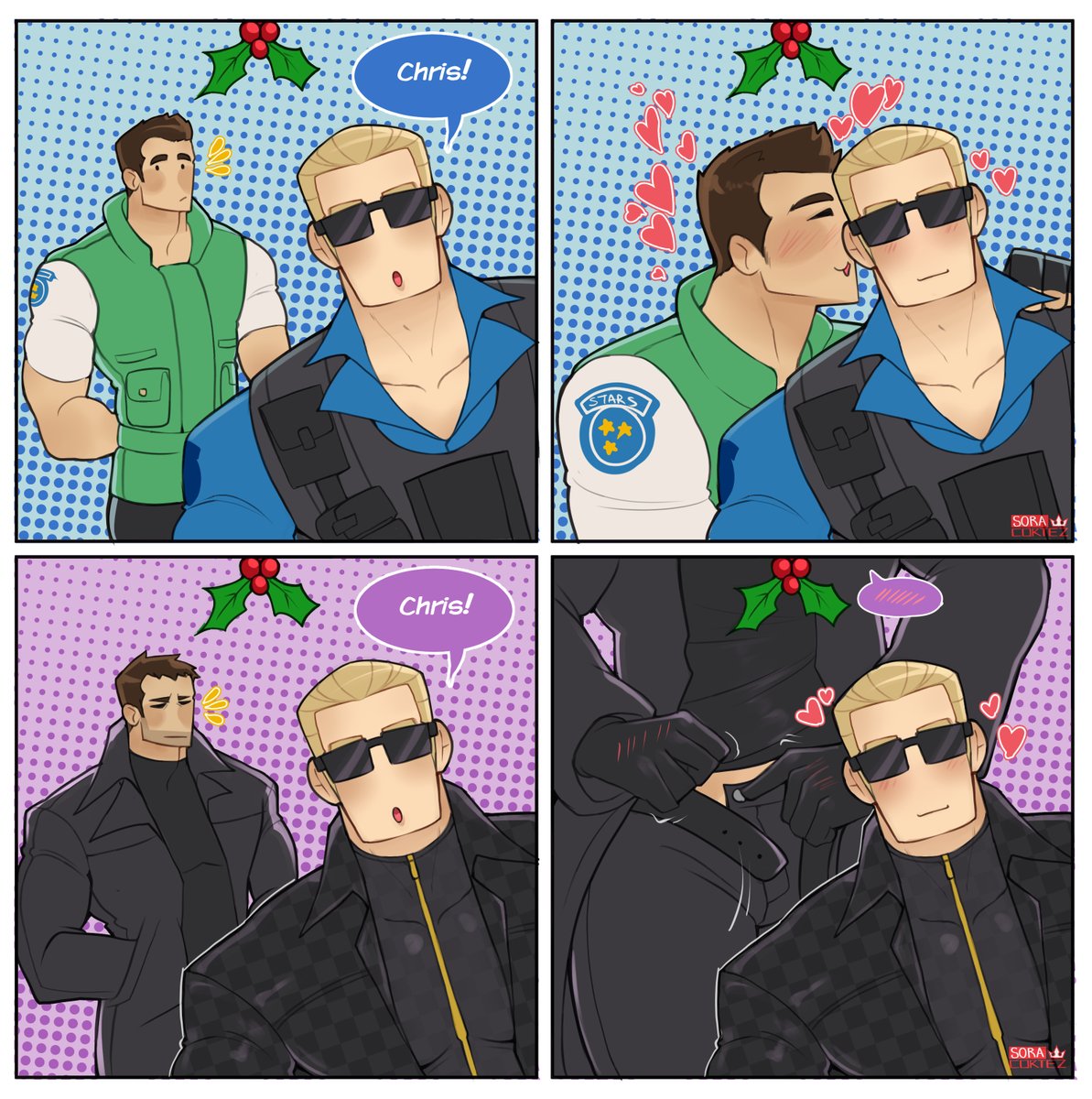 Some things never change... Albert, Chris and myself wish y'all a merry christmas! #REBHFun #ResidentEvil #CAPCOM #FANART #AlbertWesker #ChrisRedfield #ArtistOnTwitter