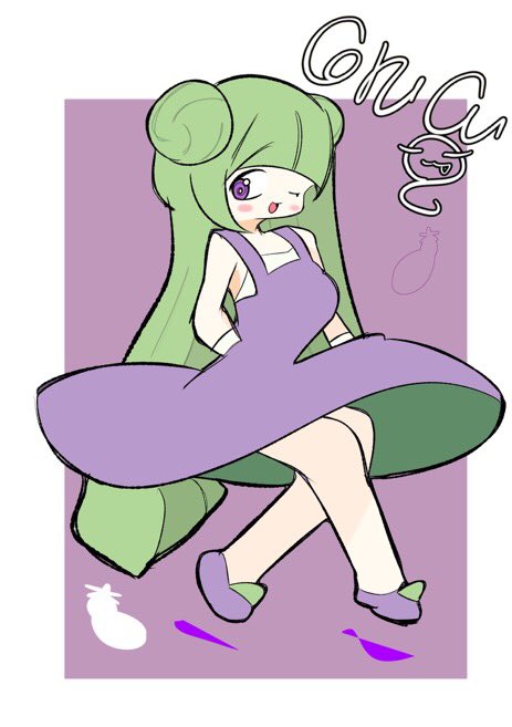 家のナス収穫記念にキーナちゃんにはナスっぽい服着てもらいました🍆 #ナス #夏野菜 #イラスト #oc #イラスト