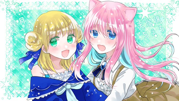 フォロワの推しでちぇろちゃん描いたもののインナーカラー水色にし忘れたリベンジ&そのときにべーるちゃんも上がってたのでお二人を描きました🌌 女の子かくの楽し~~~ #おべるかき #ちぇらすと
