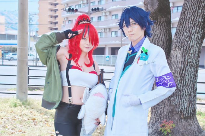 ⚠︎コスプレ/cosplay⚠︎ 「友達連れてきた!」 「友達じゃないですよ、サンドバッグを叩きに来たんですよ」 「はぁ〜!?よく言うよ!」 🌈🕒 / ❤️🔥&🥼🌱😺 (ま.ね.き.ねこコラボ衣装) #マチアソビ2023 📷▶︎ぐっちぃさん 🥼🌱😺▶︎いなずまくん