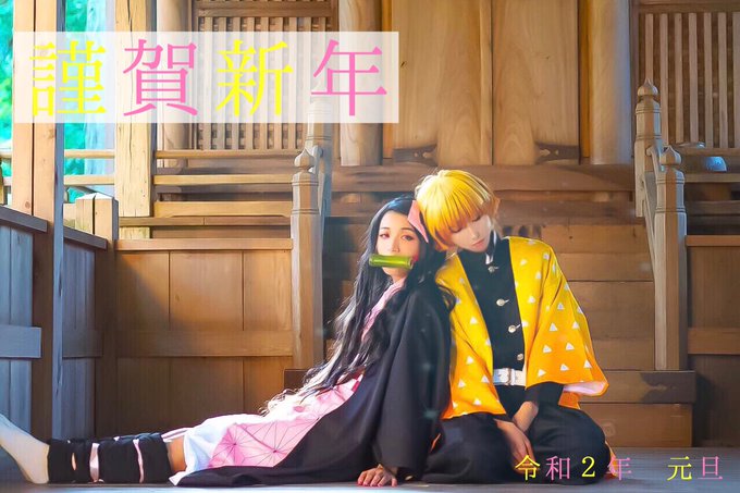 そういえば、お友達が加工してくれたんだけど使うとこなかったあけおめ画像貼っとくね笑 #供養画像 #コスプレ #ぜんねず #善逸 #禰豆子 #初心者レイヤー #レイヤーさんと繋がりたい #コスプレイヤーさんと繋がりたい