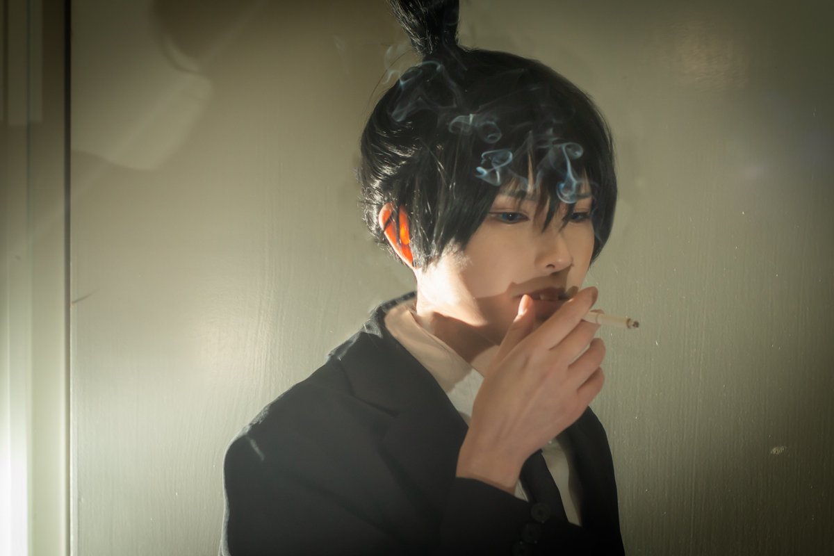 コス納めはアキくんでした🦊 まさかチェで終われるとは思わなかった笑 後輩に慣れて楽しかったし、タバコ撮影は新鮮やった 普段吸わないので、難しいね🫠