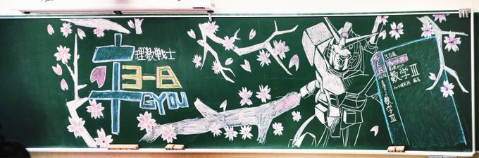 卒業式だったので黒板アート #ガンダム #イラスト