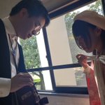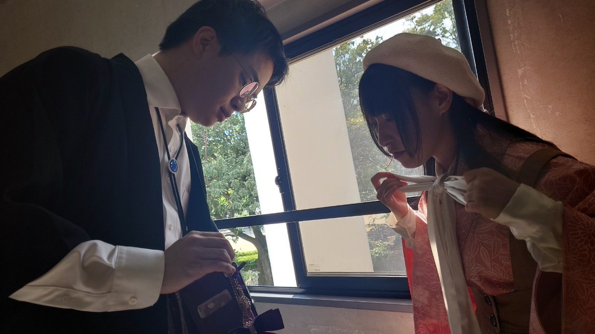 これは暑い中、リボンと格闘する葉子と頼まずとも流れるように手助けしてくれる優しい明智先生の図。 お芝居でちゃんと絡むのは初めてだから良き相棒目指して頑張らねば…!と思うなど🐰💭 お盆、忙しいかもだけど観に来てほしいな🌷 🦎黒トカゲロマンセロ 雨宮優菜予約 ▷ticket.corich.jp/apply/270398/0… twitter.com/cos_yuna/statu…