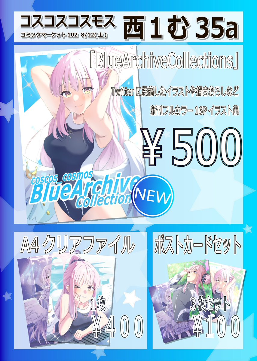 いよいよC102当日です!! コスコスコスモスというサークルで参加させていただきます〜(≧∇≦) 西1む35aにてブルアカイラスト集頒布してます〜!!足を運んでいただけたら幸いです!! #C102 #ブルアカ