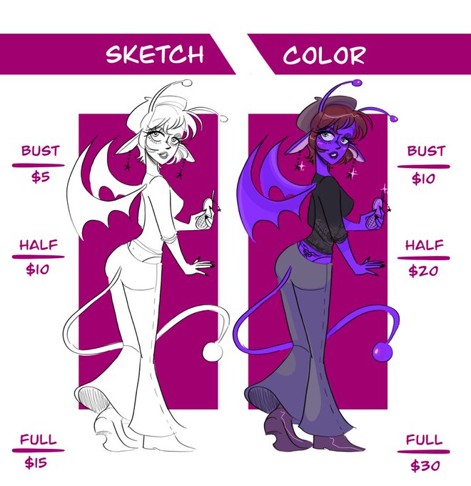 Commissions are open!! I’m wanting to save up for us to visit my partner’s home country and family soon! 🖤 Just dm me to order one! I particularly love drawing fanart and ocs 🥰💘 #artcommissions #artistsontwitter #characterart #cartoonist