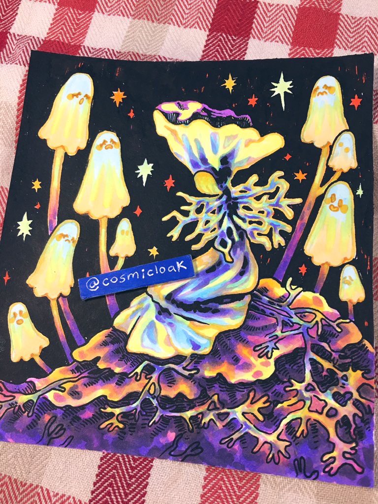 here’s some traditional examples of trying to achieve “glow” effect using pastel/neon more art/sh0p: cosmicloak.bigcartel.com mini prints: mushroomy.house/cosmicloak