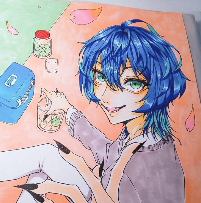 お昼寝中、稚魚🐬🦈の隣に居たはずの監督生ちゃんが居なくて探しに来た。〜という設定……w 初めてコピック使った!(●︎´▽︎`●︎)肌だけ!他はイラストマーカー! お気に召していただけると幸いです!(*^^*) #ツイステ好きな人と繋がりたい #ツイステファンアート #twstプラス