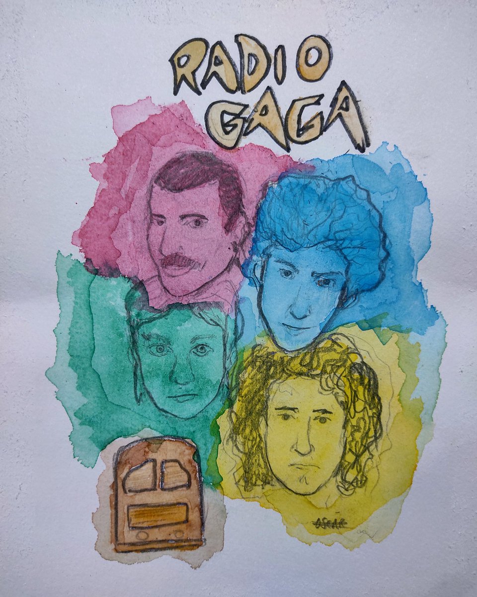 4 . Radio All we hear is radio ga ga El inktober me está matando más de lo que ya estaba muerto #inktober2020 #inktoberday4 #inktoberradio #inktoberqueen #FreddieMercury #BrianMay #JohnDeacon #RogerTaylor