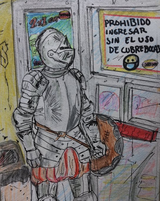 14. Armor ¿Ustedes ya han olvidado salir sin cubrebocas? #inktober #inktoberday14 #armor #inktoberarmor #inktobermexico #oxxo #cubrebocas