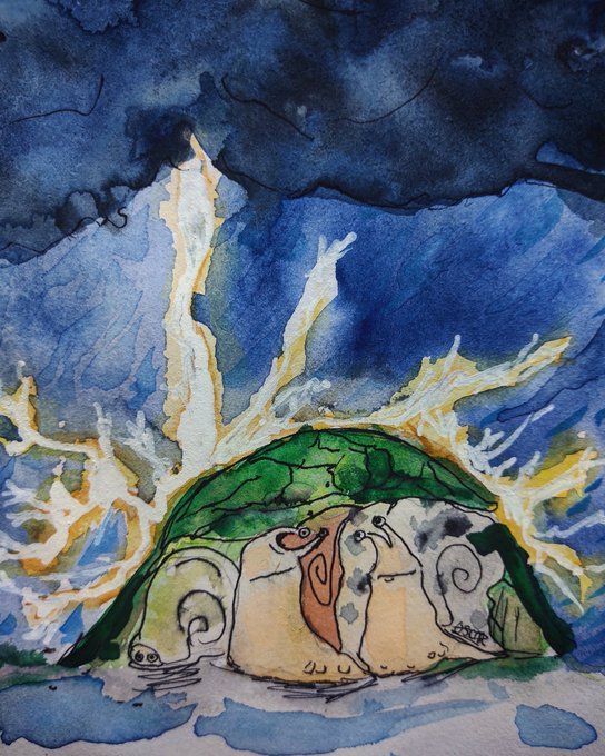 19. Dizzy. Varios Doctores Simi girando sobre un juego roto del parque, en acuarela. Mi carta de amor al arte. @FarmaciasSimi @drsimioficial @DrSimiChile #inktober #InktoberMexico #Dizzy #InktoberMexico #dizzyink