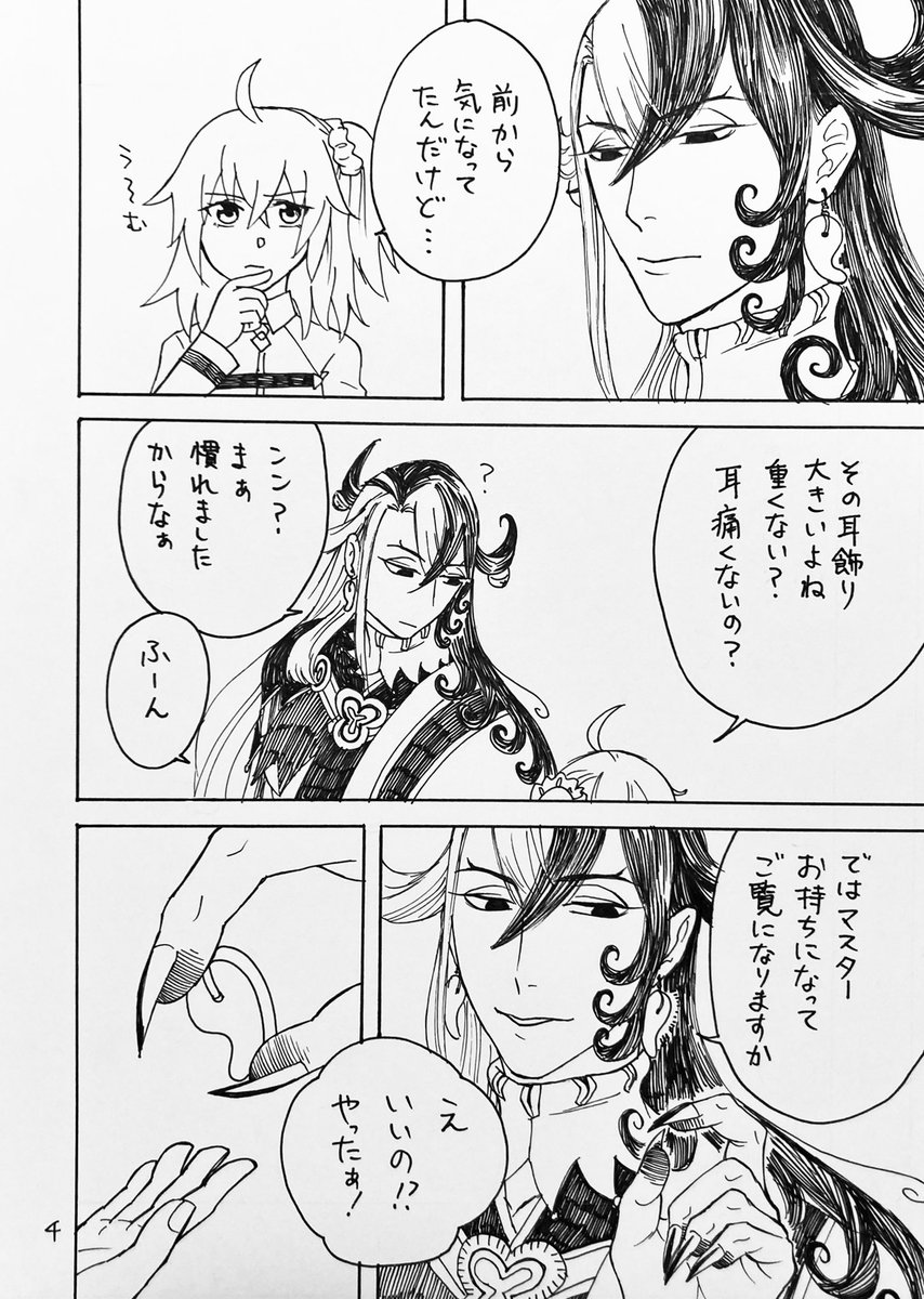18 41 5/3 リンボー舞踊会4のリンぐだ♀新刊サンプルです。 「耳飾りの呪」P20/B5/¥300 ꘐの耳飾りについてのギャグ&ほのぼの?な話(1/2) 表紙は二色刷りです。表紙↓はイメージなので実物どんな仕上がりになるか楽しみですね…! 23/04/28 23:50