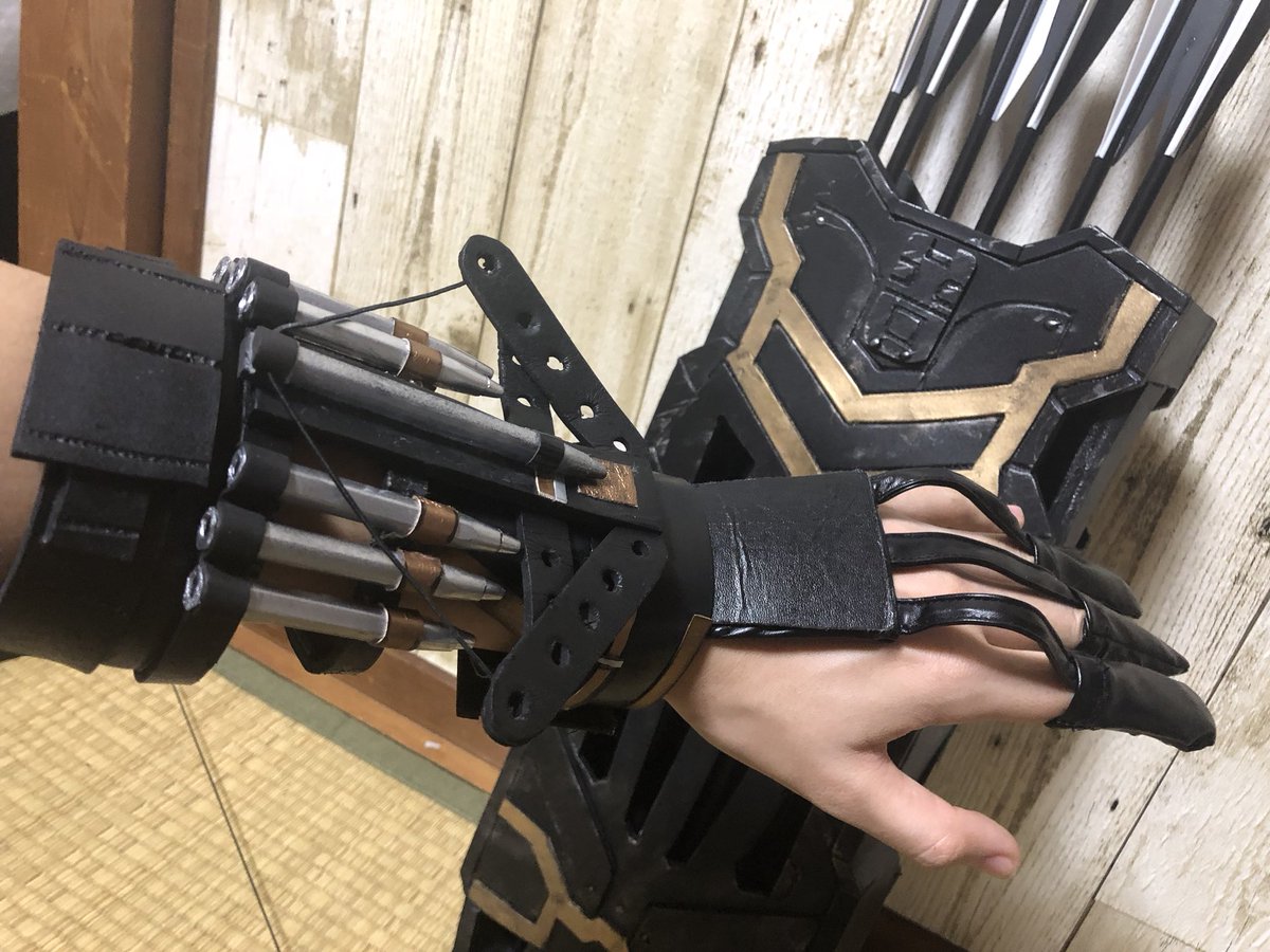 49 197 ホークアイの装備は自作で、コスプレボードをメインにラバースプレーで仕上げをしました!!なのでどれも軽くて扱いやすいです~ 弓もマグネットで分割できるように作ったので持ち運びが楽です~😆 19/11/25 19:17