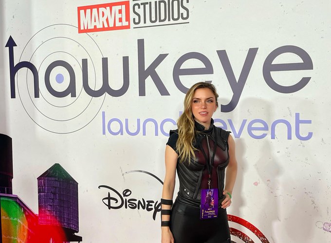 What an incredible night at the @hawkeyeofficial premiere! Thanks so much to @MarvelStudios & @disneyplus for the invite! Loved the first two eps - solid start for the series ❤️ 2 of 4 📸s by @GeekStrongTV #hawkeye #disney #disneyplus #marvel #katebishop #cosplay