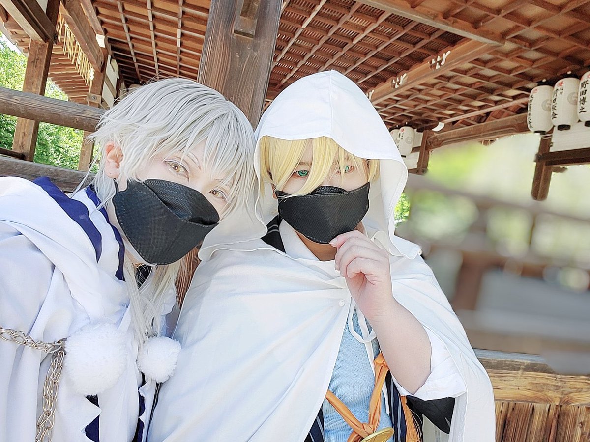 今日の藤森神社でのイベントで一緒に撮って頂けました☺️🌸ありがとうございました✨素敵なレイヤー様でとても楽しかったです‼️また会えたらぜひよろしくお願いします😭🙏✨ 鶴丸国永 @maraihi3 山姥切国広 @cosplayhrure #鴨コス @shimogamocoseve #藤森神社 @fujinomori505