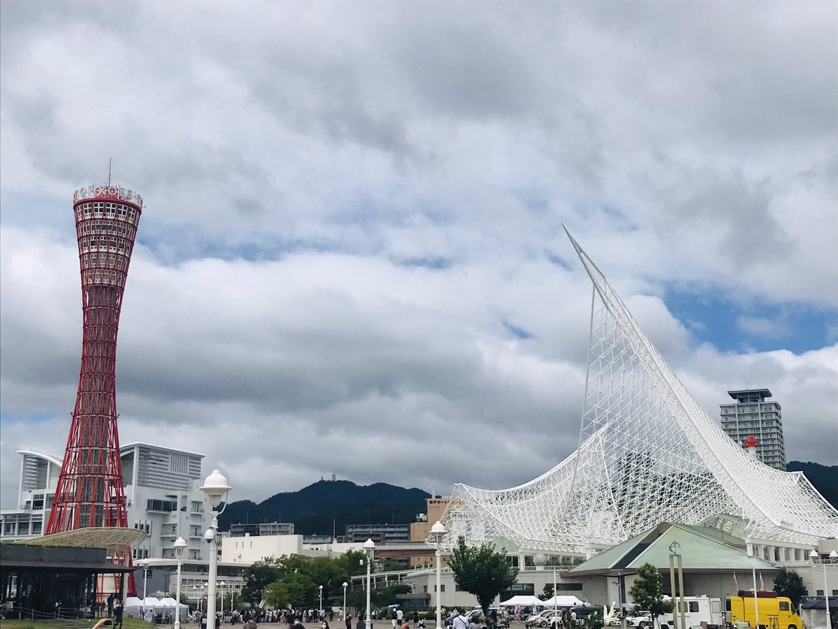 一般でコスプレ見にきた🤭神戸ポートタワーと隣の神戸海洋博物館が東リベの黒龍カラー!!🎴2日目晴れてる🌞 #かみこす