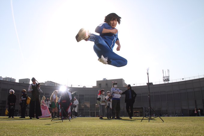 16 77 念願のジャンプ撮影! 俺はぼっちじゃない! 📸:ジャングルさん(@tgyjungle1 ) キメツ学園物語/冨岡先生 #東郷乱舞 #コスプレ大運動会 22/05/09 17:15