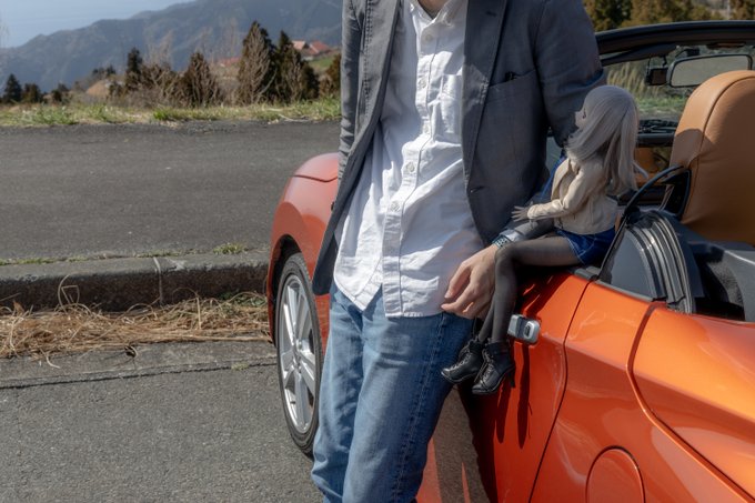 1 25 西伊豆高原。 ここでお写真撮ってるときに白いセロがお隣に居ました。 ご夫婦でオープンドライブとか最高ですね。 僕も可愛いうちのこと一緒なので最高ですよ #ドールとオーナーと車 23/03/23 23:19