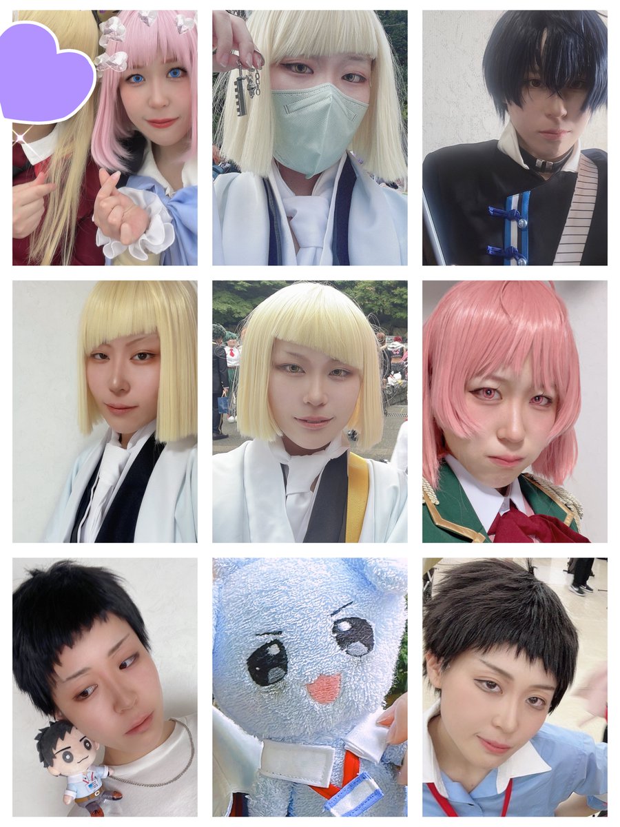左上から順に並べてみたけど、一番最初しか女装してない😂下半期は怒涛の女子キャラ予定です 同じキャラでもメイク違いすぎて安定したいな〜 #2023年上半期コスプレ総決算