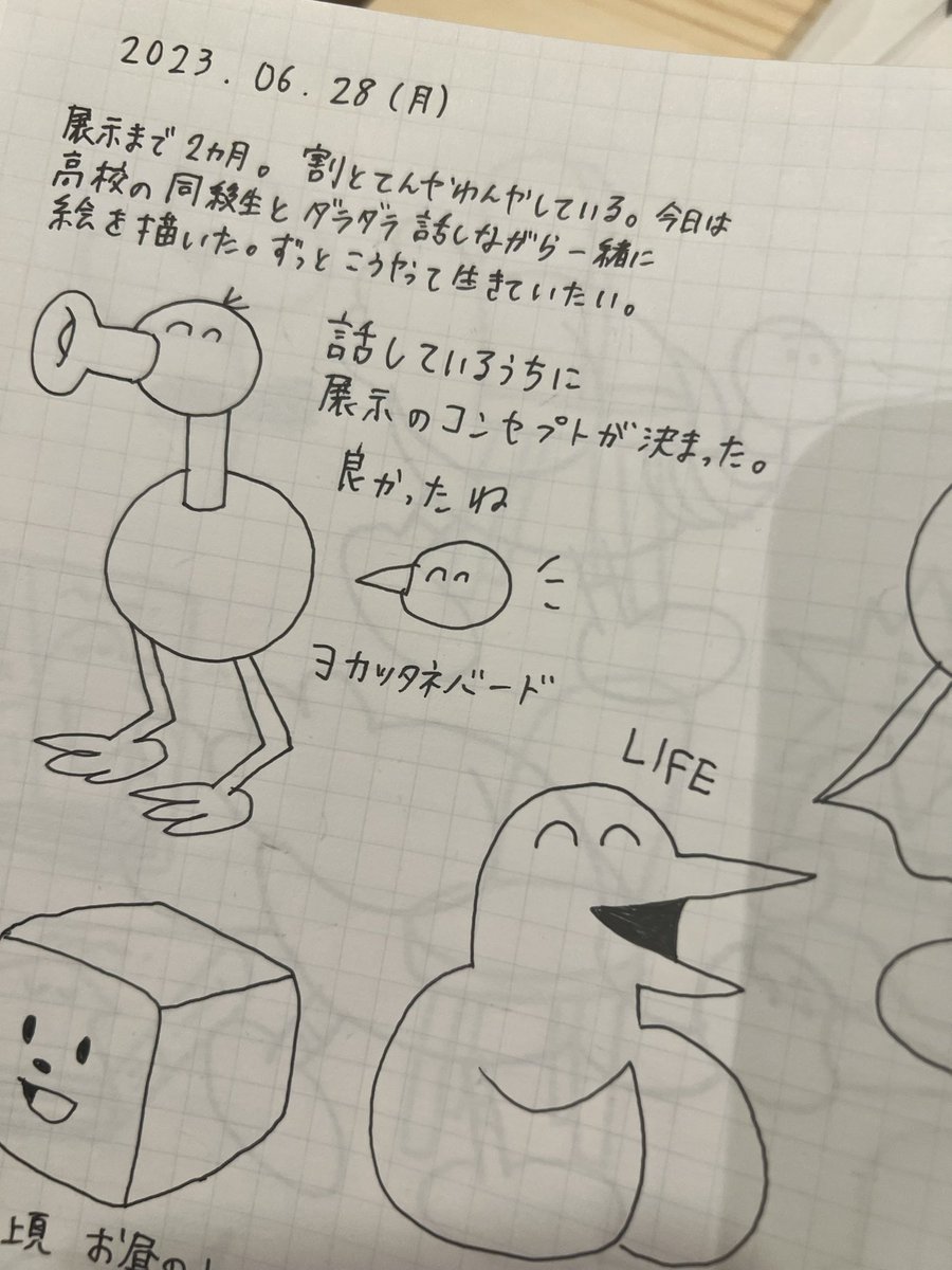 2 18 展示会場では販売作品以外にも、メモや落書きがびっしり詰まってる少し恥ずかしいノートも展示します。ご自由にご覧ください!ね! #NEWFRIENDZOO 23/08/13 02:34