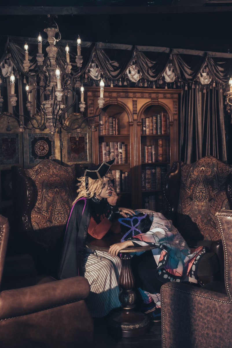 これは休憩中に千鶴さんが脚を貸してくれたので嬉々として潜り込んだ私とその時撮ってもらった天才Photo みんなコスプレが上手〜〜〜〜〜👏 ヨル:するが琥太郎、撮影:ライチ、Thanks千鶴