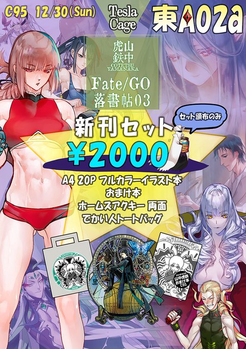 【C95】 2日目 東A-02a『Tesla Cage』お品書きです スペースでの頒布物は イラスト本、おまけ本、アクキー、トートバッグの会場限定4点セットになります イラスト本単体は書店委託もありますので何卒よろしくお願いします 🍈【メロン】melonbooks.co.jp/detail/detail.… 🐯【とら】ec.toranoana.jp/tora_r/ec/item…