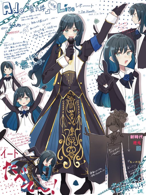 54 229 とてもとても大遅刻ですがAdoちゃん「蜃気楼」千秋楽の個人的感想ライブレポです……………!!!!!今回もとっても細かくなってしまったので拡大して見ていただければと思います☺️☺️ #Adoart #蜃気楼 23/01/22 17:58