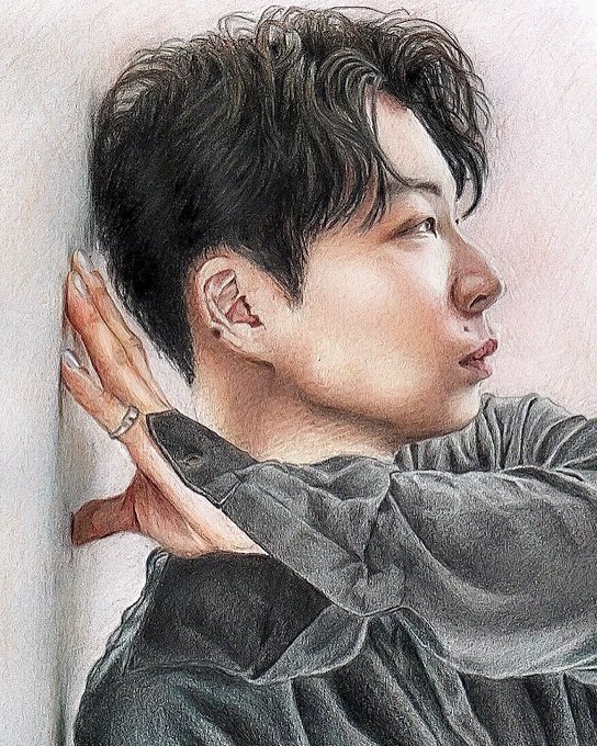 #ヒーセ やっと完成! 基本顔以外描きたくないマンで、なんなら髪の毛も描きたくない位でいつも顔のアップでお茶を濁すんですが、どうしてもサンダーバードまで入れたくて(ちょっとしか入ってないけど笑)頑張りました😆 #THEYELLOWMONKEY #お絵描き #鉛筆画 #色鉛筆画 #似顔絵 #illustration