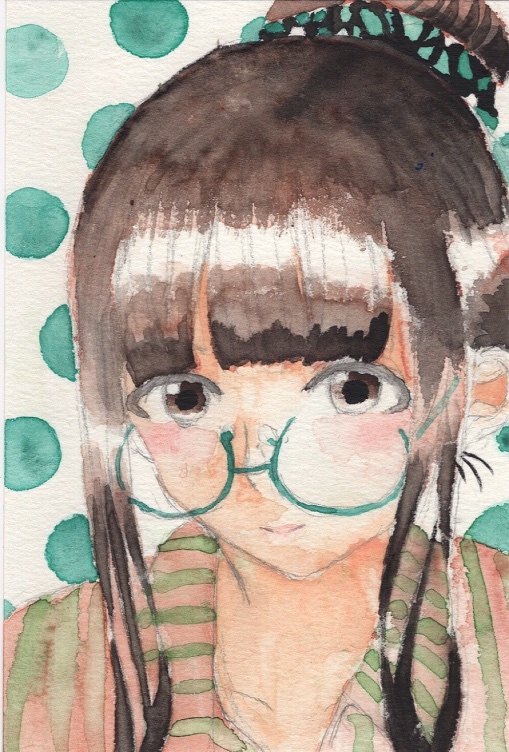 丸縁眼鏡の女の子!思ったより好みな感じに描けた〜 #水彩