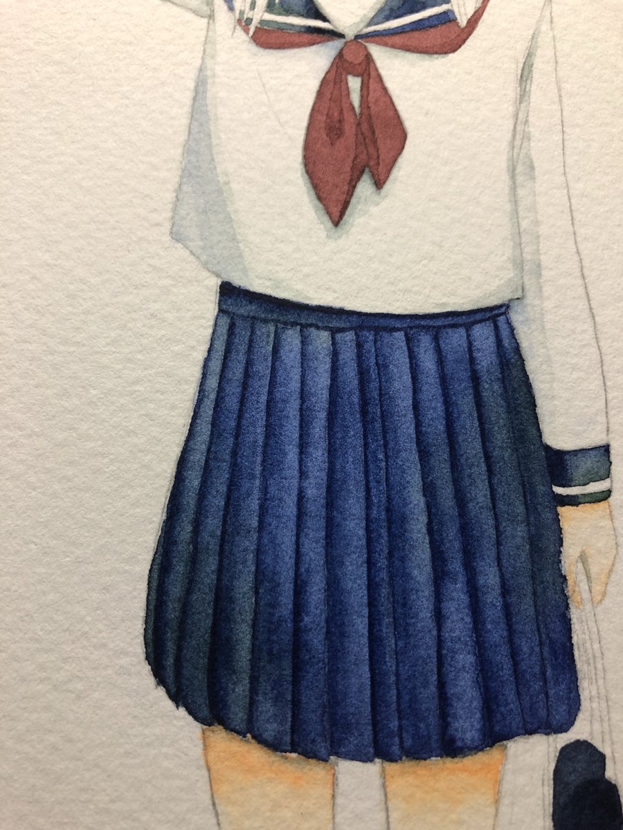 スカートのひだ頑張った。完成はまだ少し先かな。 #水彩