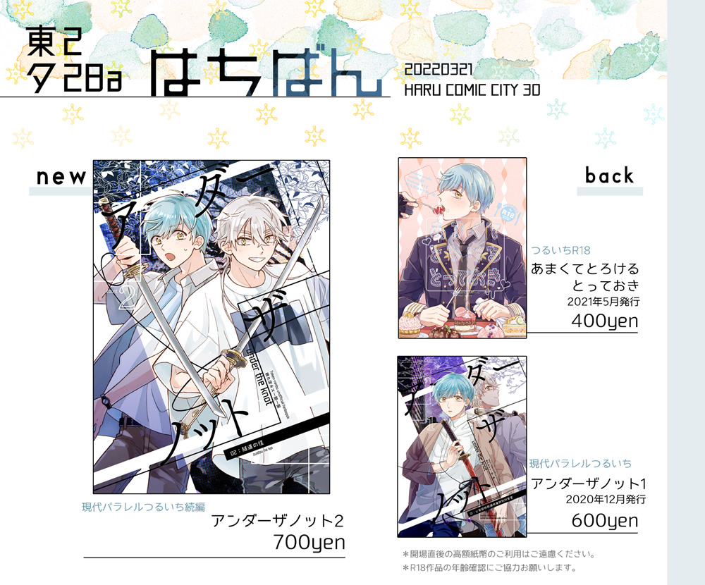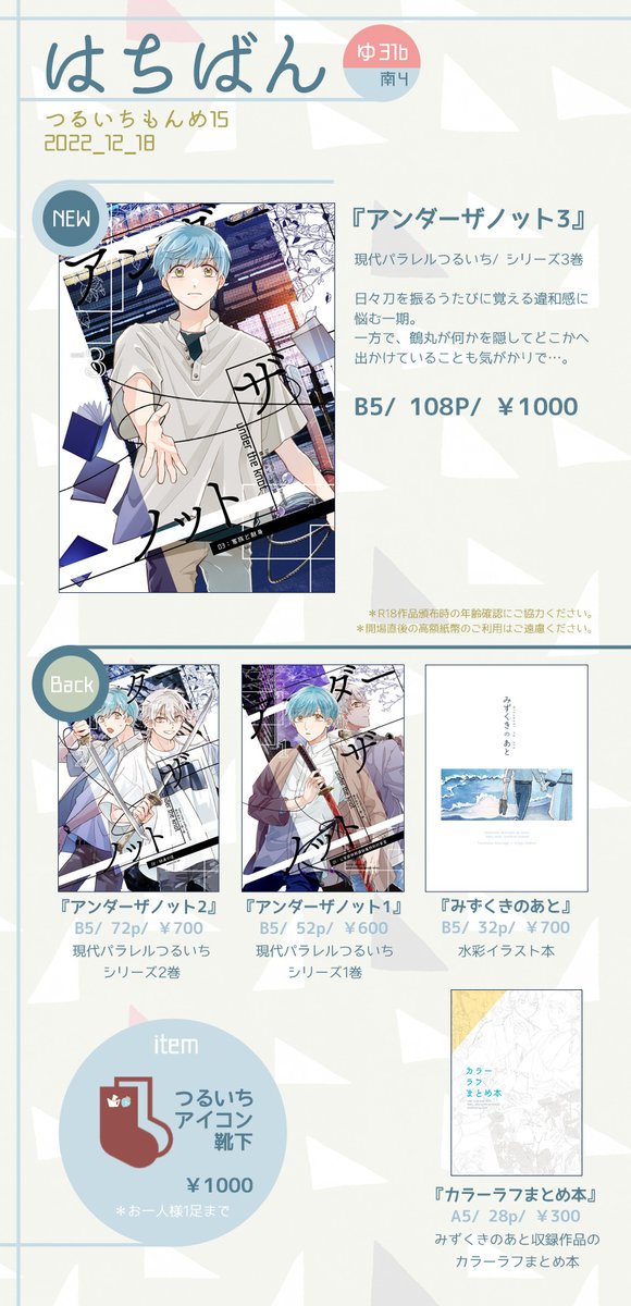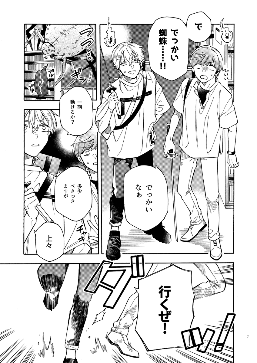 【7/30つるいちもんめ新刊サンプル】 「アンダーザノット4準備号」 B5/ 44P/ イベント頒布500円 現代パラレル・バディつるいちシリーズの4作目準備号。事件現場の大学図書館に潜入したつるいちが妖魔と戦う回⚔(長いサンプル📖 pixiv.net/artworks/11020… ) (1/4)