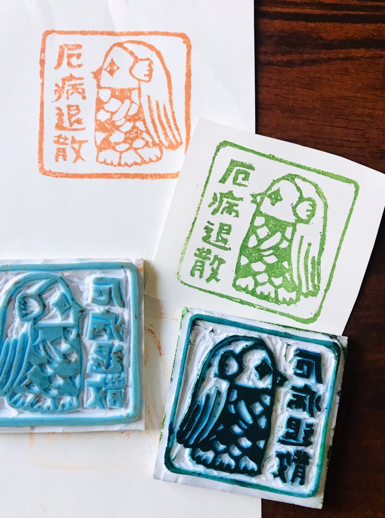 明日からアマビエさまの絵本が 販売されます! 運がよければ、 アマビエさまがスタンプを 押してくれますよ♪ …消しゴムはんこ初心者ですが 私が作りました〜! #アマビエ #アマビエチャレンジ