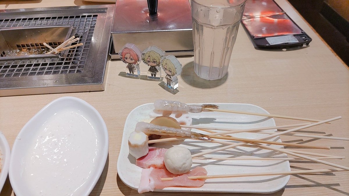 5 26 アコスタお疲れ様でした!🌸 ニキはんと遊んできたで!🍳 アフターは串揚げ! ジュンはんのぬい持ってきてくれたから写真撮った🌊 23/05/13 21:44