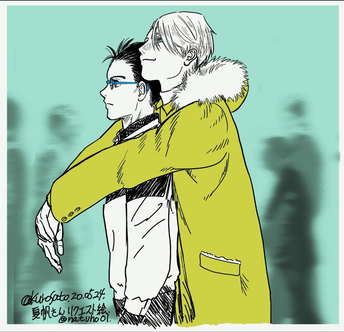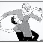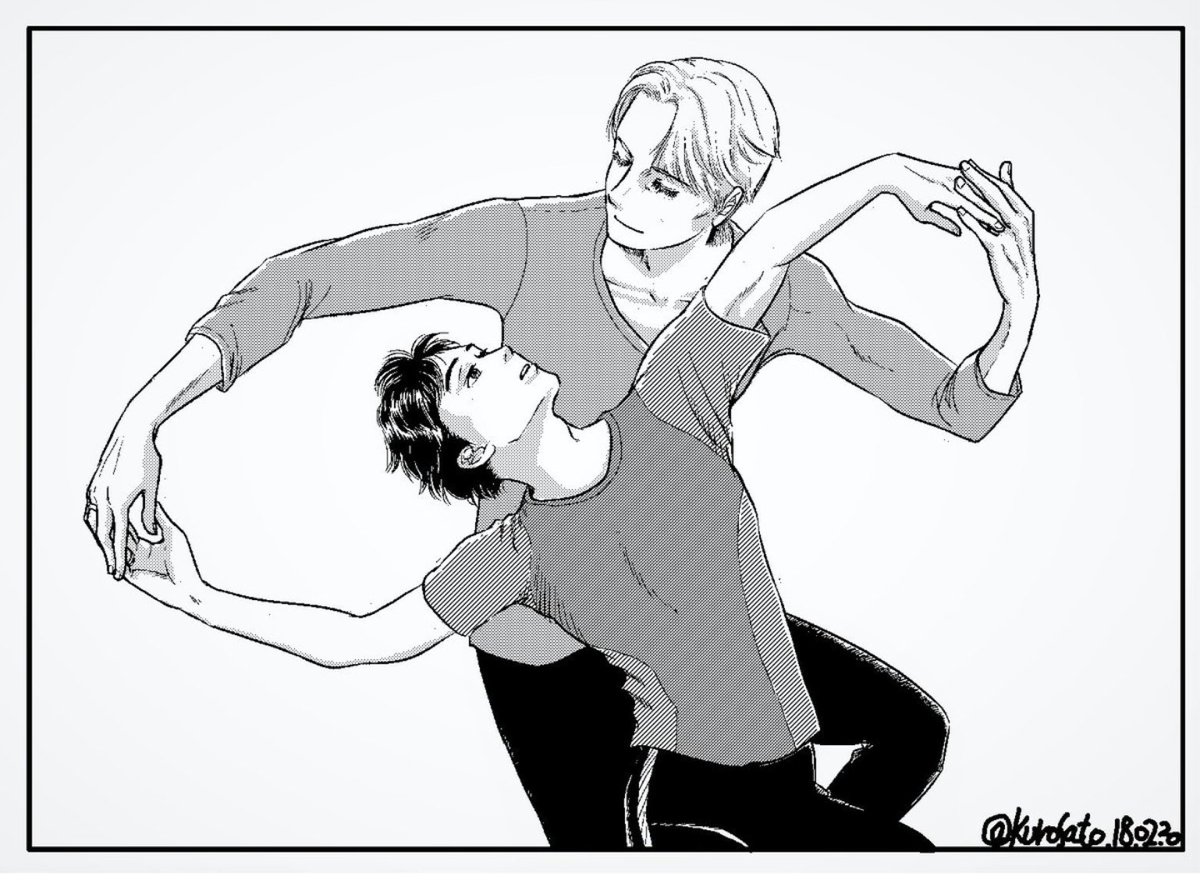 ソチの時の写真模写したやつ。 師弟のアイスダンスみたいなア~。 エキシビションの小道具コーチってやつ。#YOI