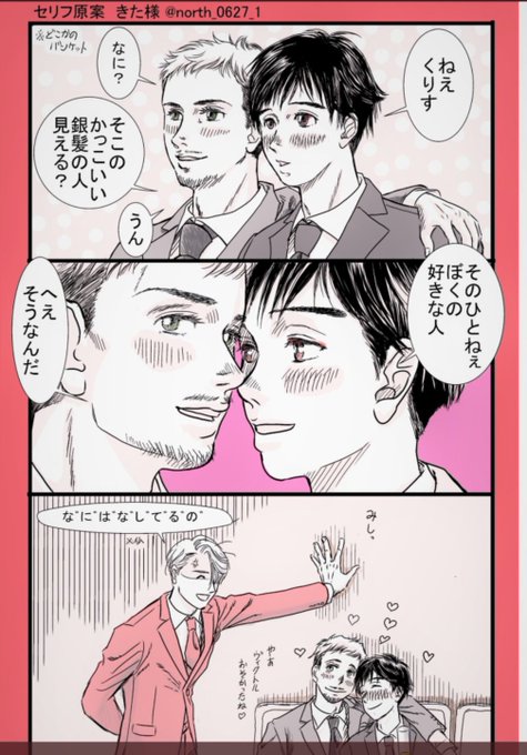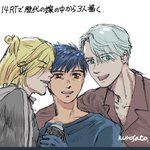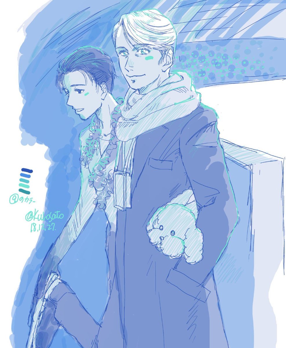 20 87 ソチの時の写真模写したやつ。 師弟のアイスダンスみたいなア~。 エキシビションの小道具コーチってやつ。#YOI 22/11/18 18:38