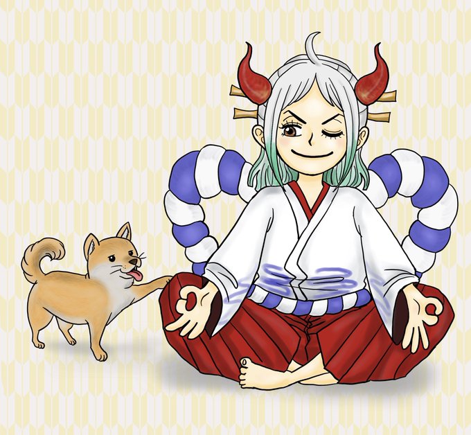 ヤマト坊ちゃんお稽古中③ 精神統一(・・・出来てない🐕) #ONEPIECE #イラスト練習中