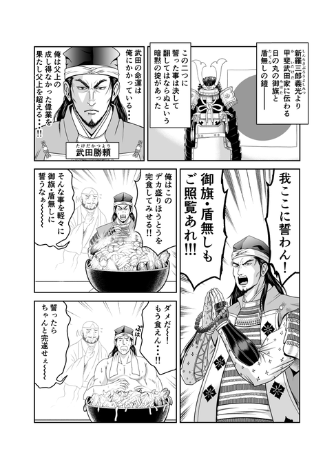 3 9 勝頼の誓いに千鳥ノブのツッコミを入れる信玄の霊。 #武田勝頼 #武田信玄 #漫画が読めるハッシュタグ 21/02/14 00:55