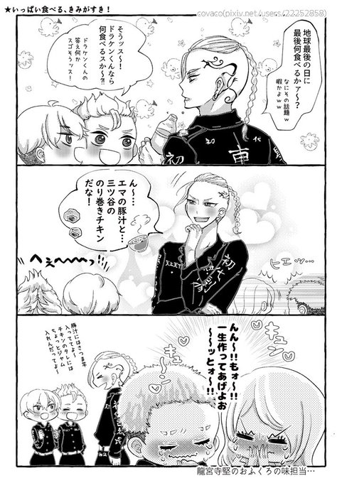 ドラみつエマのご飯事情🍚 三ツ谷家と佐野家で暖かいご飯いっぱい食べるんだよ…健やかに育てよ…のきもち… #東卍FA