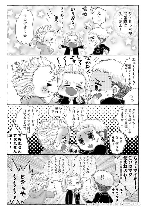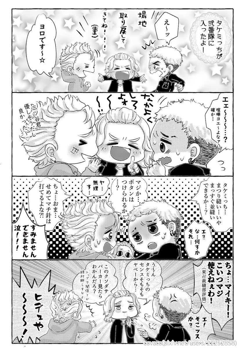 タケミっち、そういえば弍番隊だったねのまんが。三ツ谷くんのママみ尊い。 #東卍FA