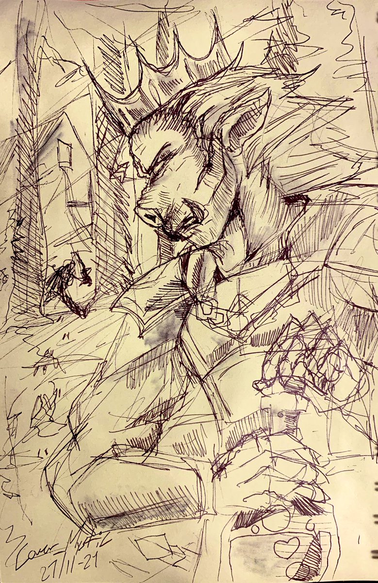 Quick sketch of Dream. today was one where I just felt like spitting ink on a blank paper and had fun, this is done without construction lines. 😁 I imagine the scenario is: in manhunt, Dream discovering the location of the stronghold. #dreamfanart #sketch