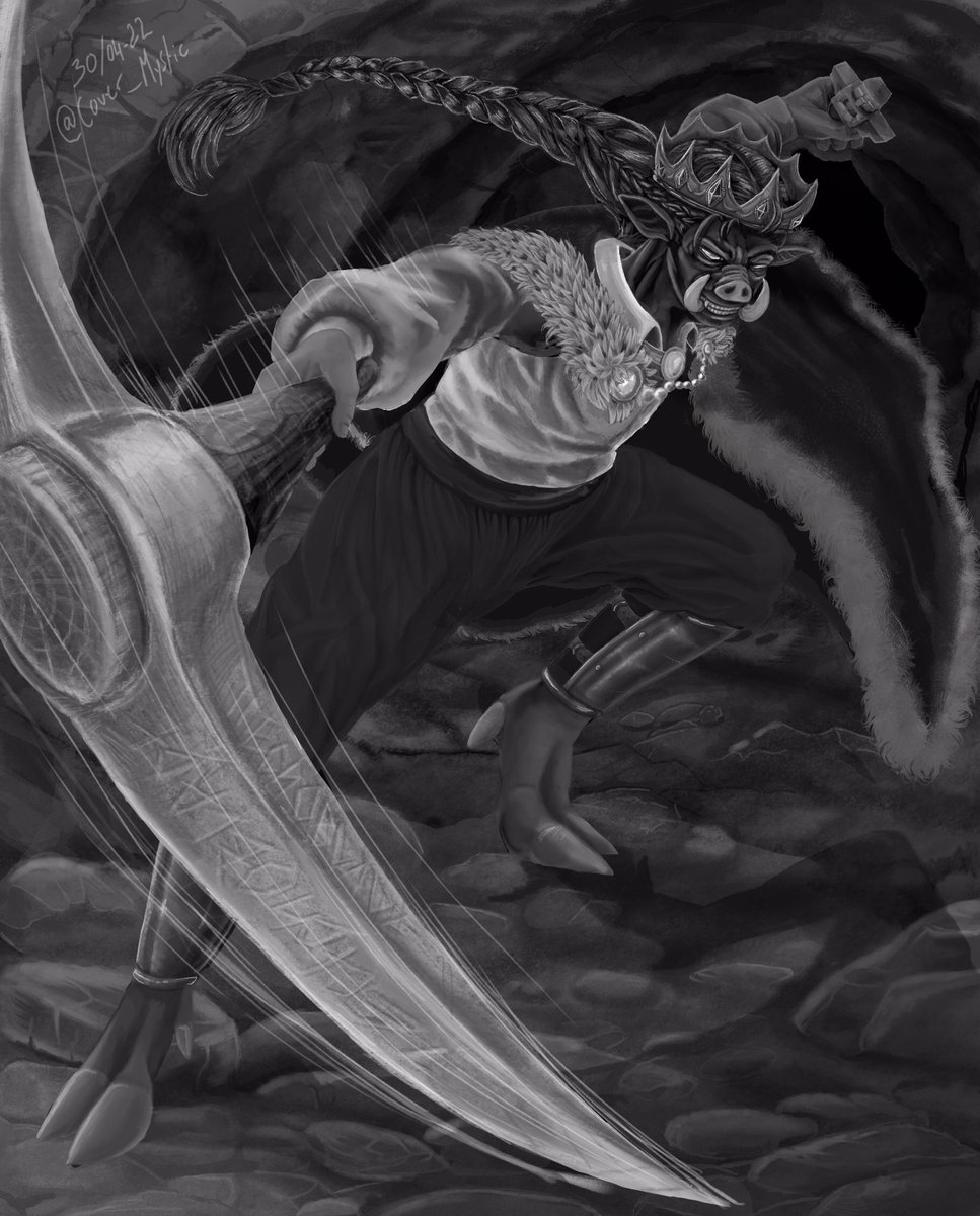 Work in progress Technoblade fanart. I think I might call the artwork ‘Pigaxe strike’, it’s my take on Technoblade’s fight against Quackity and the name is a pun, so it suits it well. 😁 #technobladefanart #technofanart