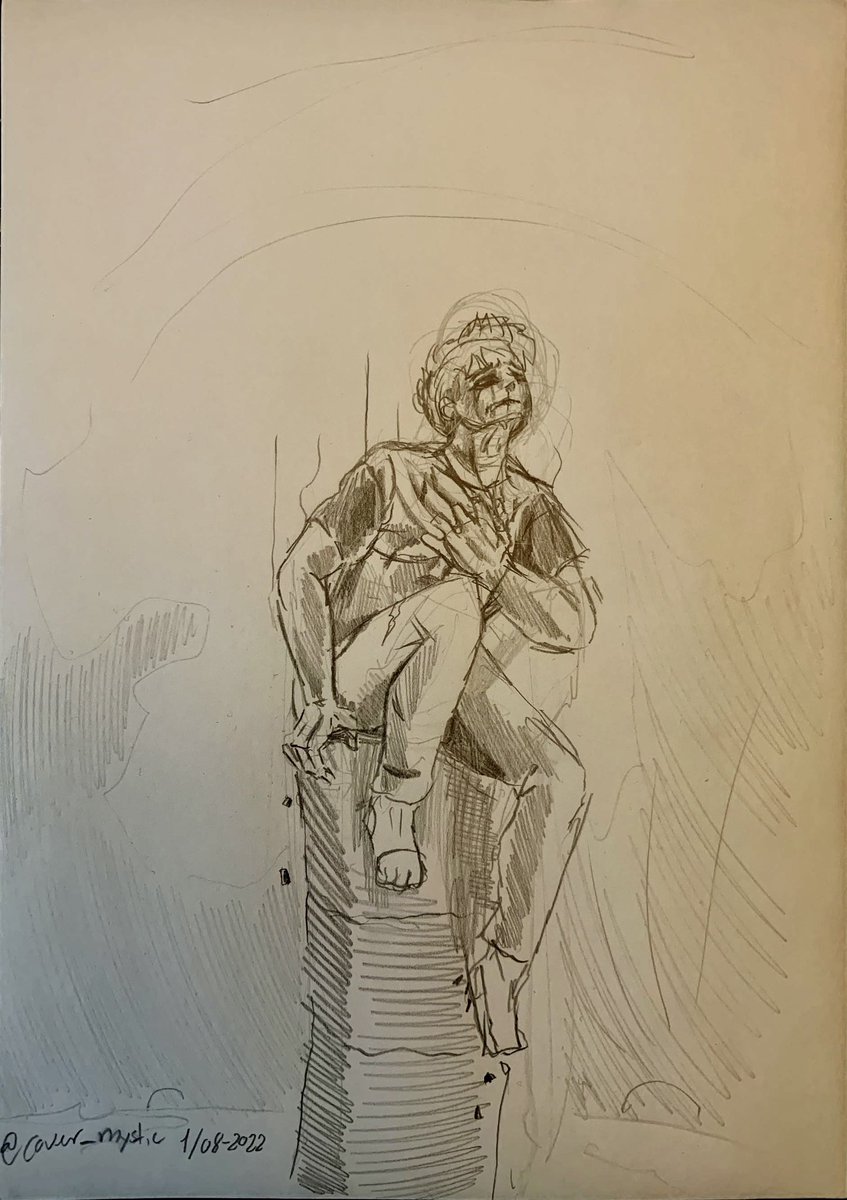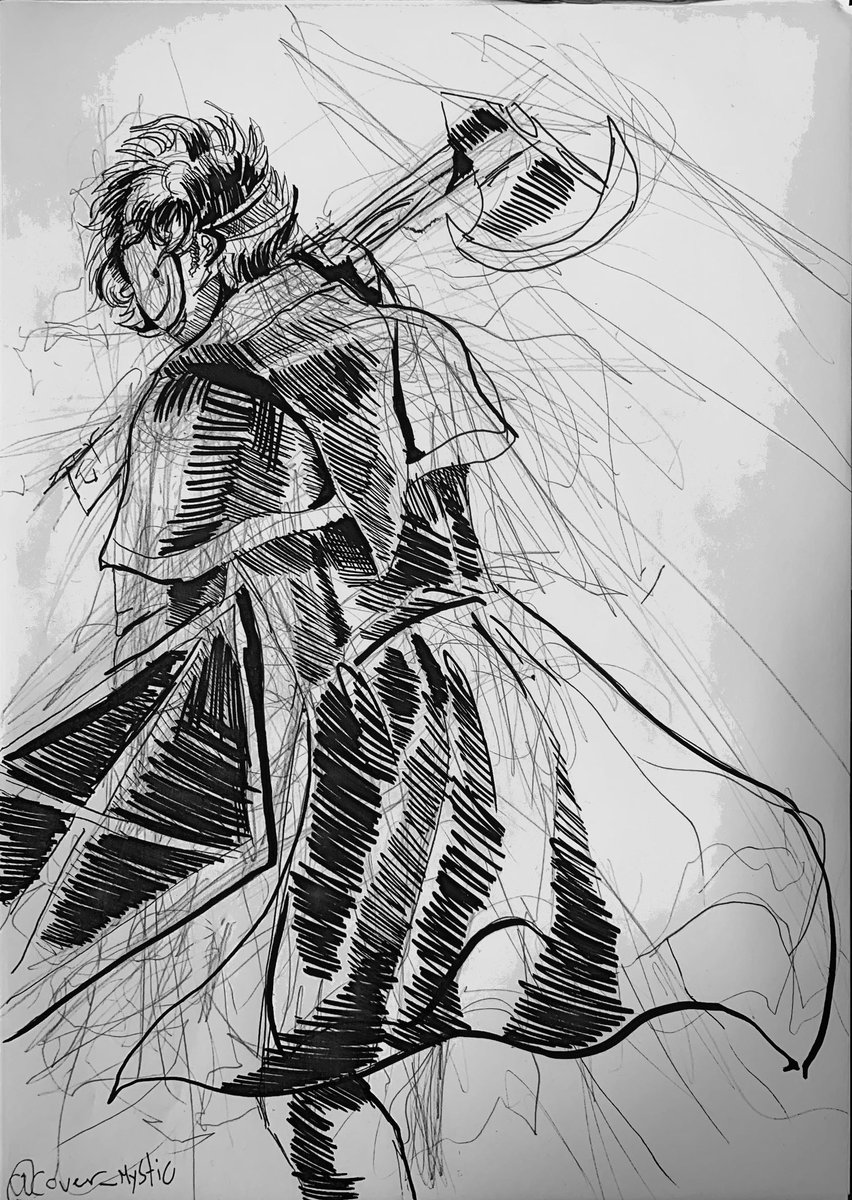 #dreamfanart might stay as a sketch. to make it look like Dream is constantly moving. I might finish the design of the axe, it's inspired by DreamXD.
