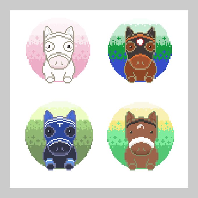 今アイコンに使ってるソダシちゃんを手直ししつつ、エールちゃん、レーベンちゃん、レイナスちゃんも仲間入り☺️ #ドット絵