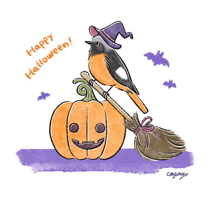 そういえばジョウビタキってハロウィンカラーだなって。 #illustration #イラスト #ジョウビタキ #野鳥 #ハロウィン #ハッピーハロウィン #Halloween #HappyHalloween