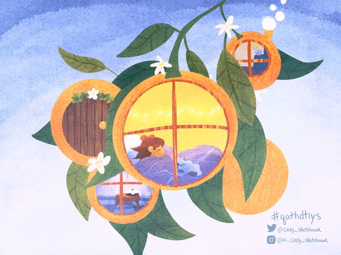 It’s cozy fruit time 🍊🛏💤 hopping into @mangoqath for a bit of a fun challenge! #qathdtiys #dtiys #illustration #digitalillustration