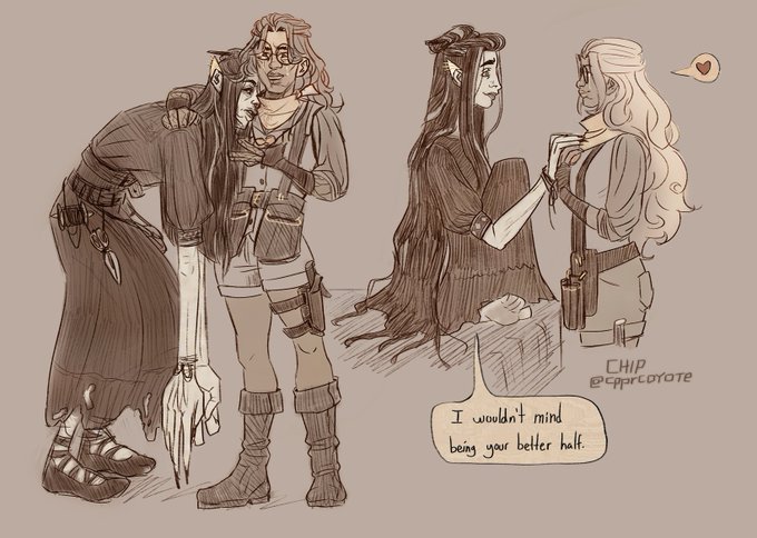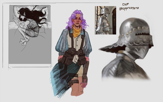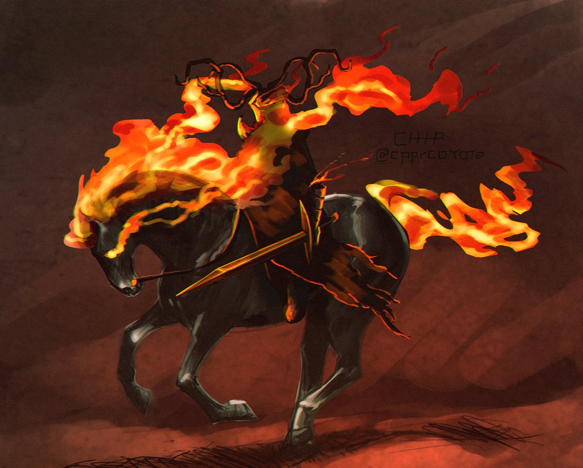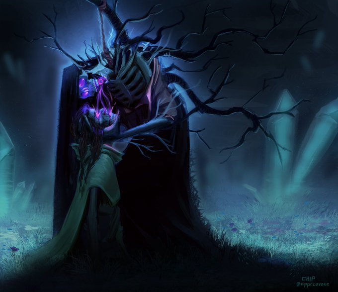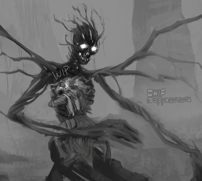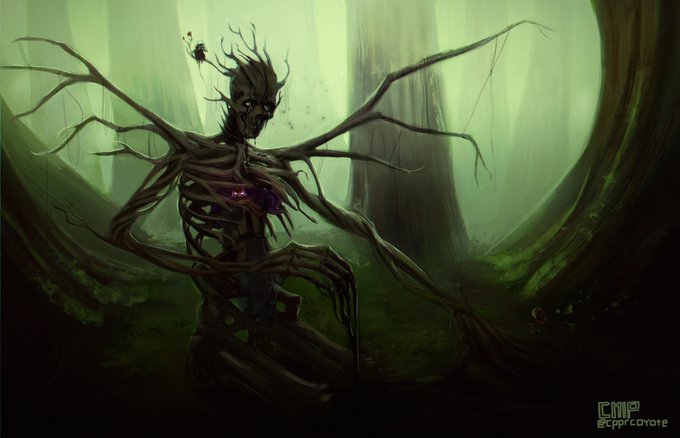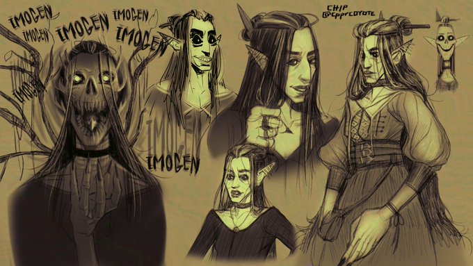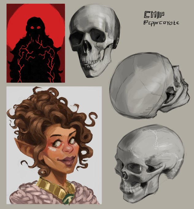 Hello, it's #PortfolioDay again! I'm Chip, and I love to draw spooky fantasy and sometimes do happy doodles, too : D linktr.ee/cpprcoyote #artistsontwitter
